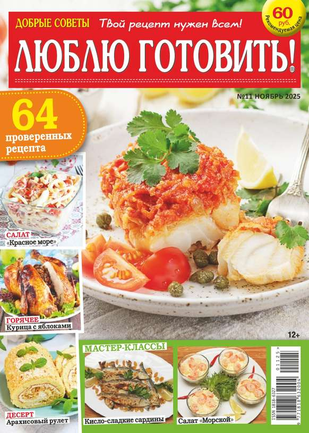 «Добрые советы. Люблю готовить!» — журнал о вкусной еде, не похожий на другие кулинарные издания. Все опубликованные в нем рецепты присланы в редакцию самими читателями. Каждый рецепт прошел конкурсный отбор, а его автор получил денежный приз. Ежемесячно на страницах журнала — более 100 коронных блюд, которые многократно проверены опытными хозяйками и которые можно смело брать в свою коллекцию рецептов тем, кто любит баловать родных и удивлять гостей.