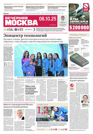 «Вечерняя Москва» — ежедневная российская вечерняя газета, старейшее из вечерних изданий в России, учрежденное в 1923 году. Выходит пять дней в неделю, кроме субботы и воскресенья. Отличается тем, что рассказывает о событиях еще не завершившегося дня. Оперативно освещает хронику и особенности жизни Москвы, охватывает все слои общества и большинство профессиональных и возрастных групп читателей.Издание представлено тремя выпусками – утренним ежедневным, вечерним (выходит три раза в неделю), еженедельным (выходит по четвергам).